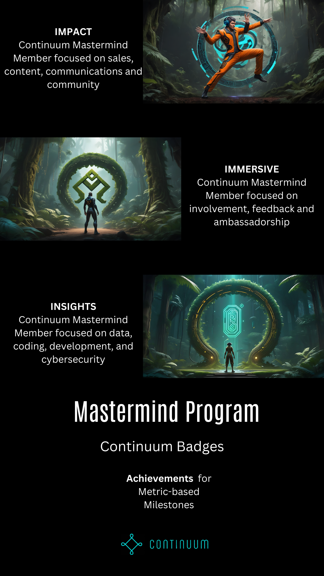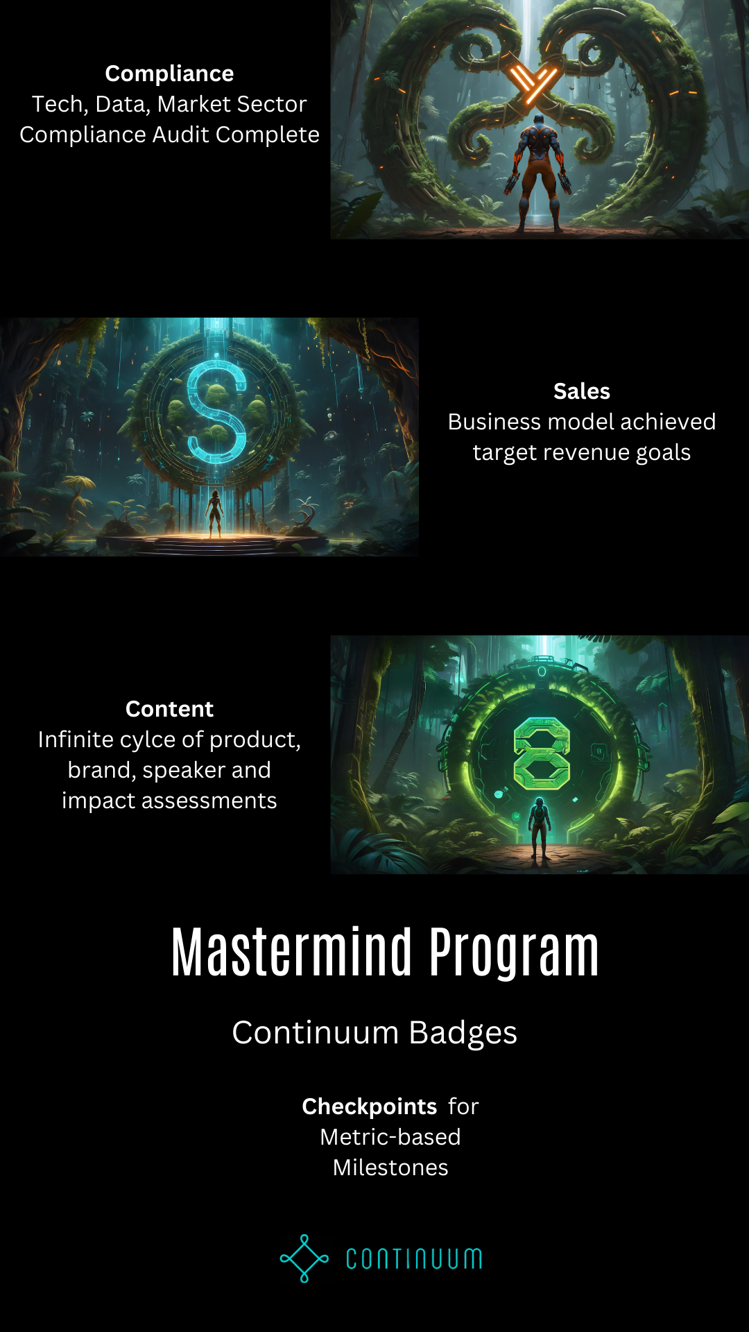 Continuum members have unique attributes that make them perfect for matchmaking all year long. Identification of these badges is based on your current status of Tech, Team and Intentions. Impact to the 4 main quadrants of Continuum: Blockchain Street, Main Street, Wall Street and Capitol Hill. Plus Sales Traction Quantification.